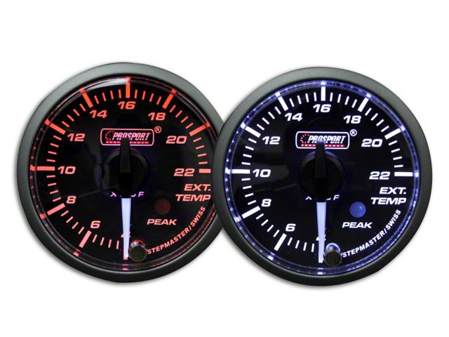 Dual Color Convenience. Accurately read your Mustang’s exhaust temperature with this reliable Prosport Dual Color Premium White Pointer EGT Gauge. It lets you easily and precisely read exhaust temperature so you can adjust your driving quickly. And with its warning feature, you can focus on driving without worrying about your exhaust. The result is peak performance on the road or on the track.