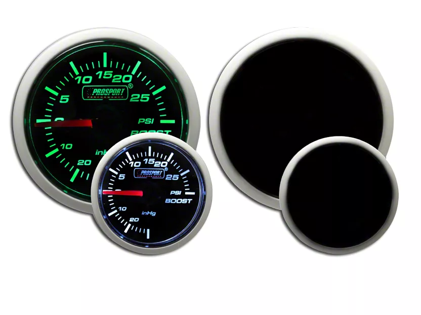 Application. The Prosport Dual Color Pressure Boost Gauge - Mechanical - Green/White is designed for all 1979-2026 Ford Mustangs.