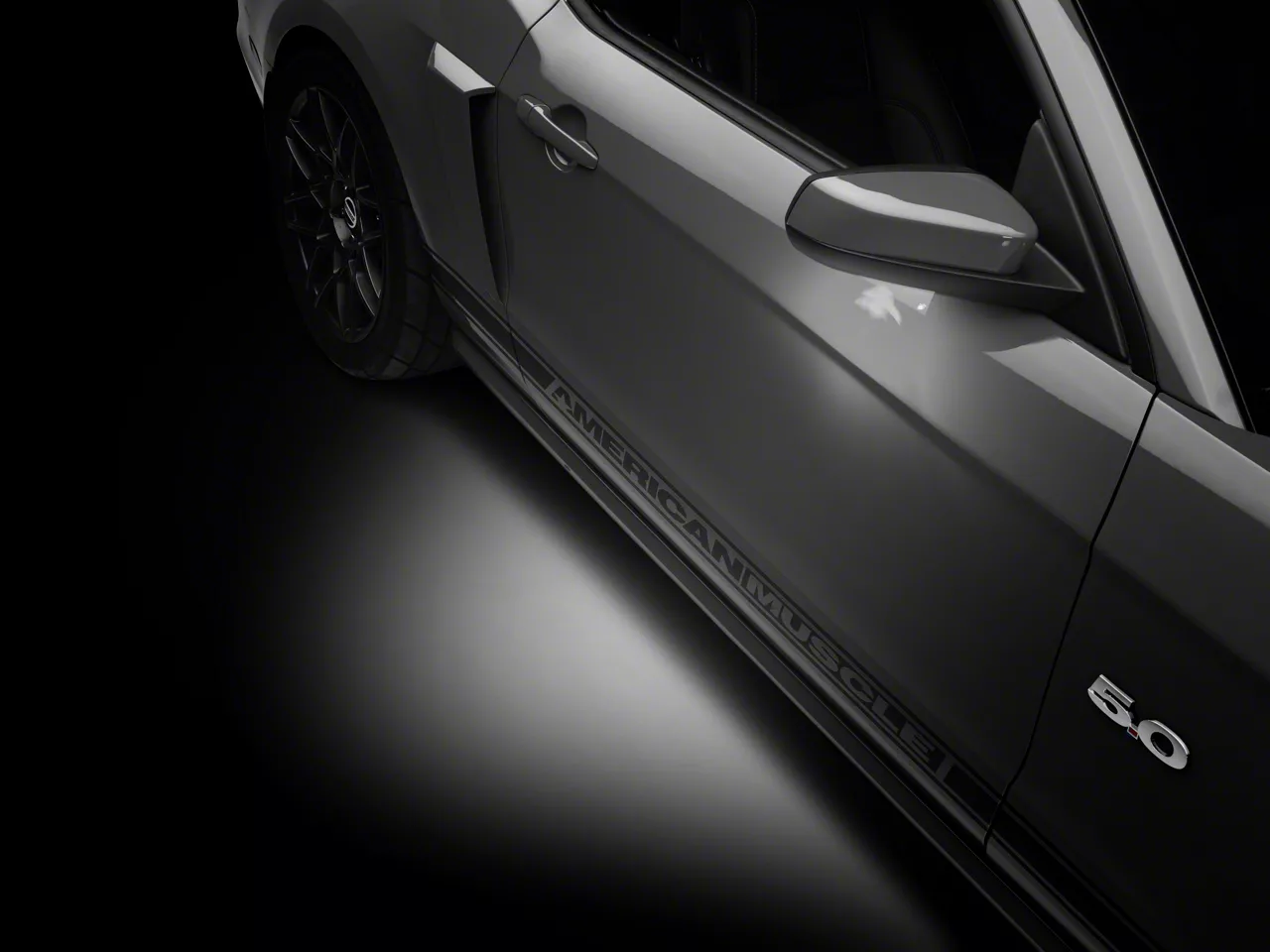 Light Up with Puddle Lamps. Puddle lamps were only made available on 2013 and later Mustangs, but now you can enjoy the same convenience and luxury in your 2005-2012 Mustang. These white Raxiom LED puddle lamps feature two bulbs and provide simple, bright coverage of the ground below at night.