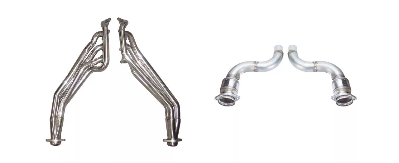 Performance Cats. The Pypes 1-7/8-inch Long Tube Headers include performance catalytic converters. These high-flowing cats will perform the job of a standard cat but in a less-restrictive manner. The high flow, less restriction provides your Mustang with the incredible performance boost.