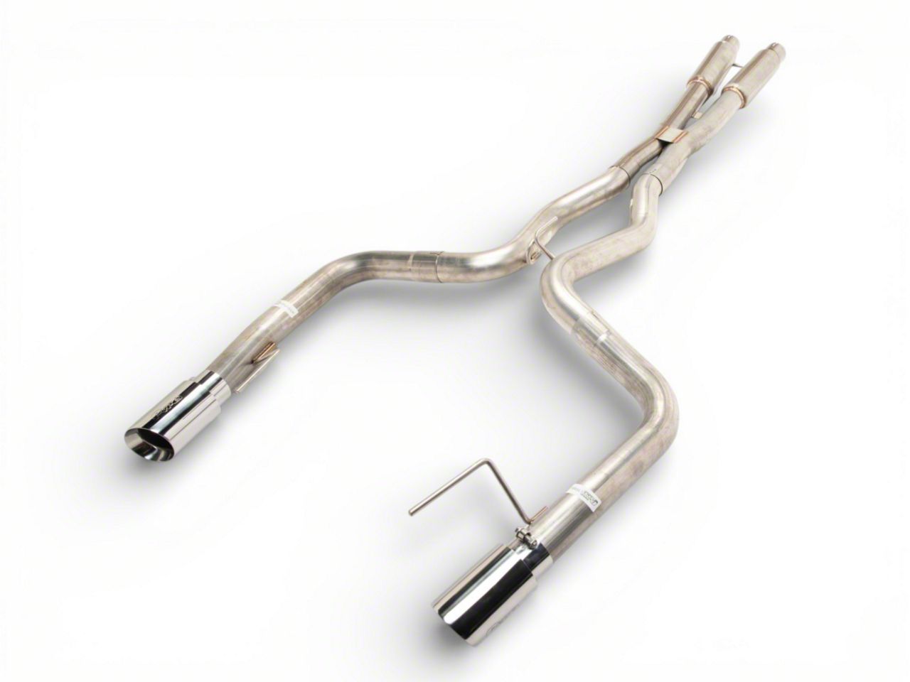 Chromium Steel Build. Featuring an X-bomb cat-back exhaust design that includes an X-type mid pipe, this exhaust is made with 3 in. diameter tubing that is mandrel-bent for improved function and constructed from chromium steel for long-lasting durability. Finished with 4-inch diameter, 304 stainless steel polished tips for a stylish accent to your Mustang's appearance, this exhaust is made to enhance your Pony's form and function.