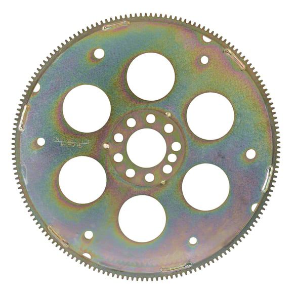 Construction and Appearance. Crafted from high-strength H70-Grade steel, the Quick Time Flexplate is designed to withstand extreme conditions. The precision-balanced design ensures smooth power transfer, reducing drivetrain vibrations. A black powder-coated finish enhances durability by protecting against rust and corrosion.