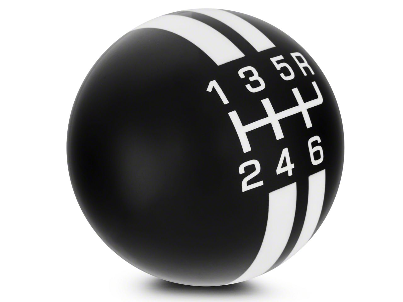 Race Track Styling. Add some race track styling to your 2003-2004 Cobra with this Rally Stripe 6-Speed Shift Knob. Featuring white rally stripes and white shift pattern, this polished black shift knob will really make a statement in the interior of your SVT Mustang.