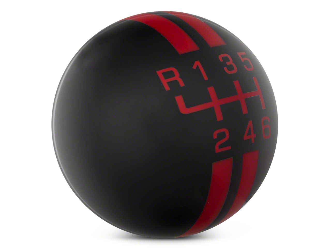 Race Track Styling. Give the interior of your S197 a touch of race track styling with this Rally Stripe 6-Speed Shift Knob. This polished black shift knob with red rally stripes and red shift pattern will really make a statement in your 2011-2014 GT, V6 or BOSS Mustang.