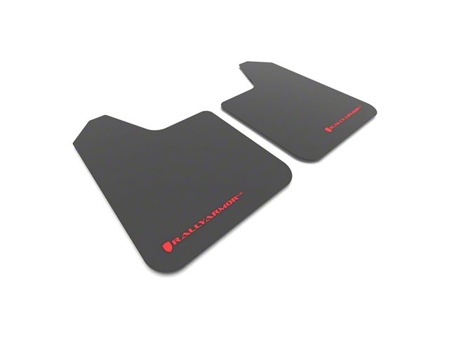 Rigorously Protective Mud Flaps. The Rally Armor Universal UR Black Mud Flaps with Red Logo can be installed Front or Rear and have been rigorously tested for proven performance. Moreover, these mud flaps serve as a replacement component, providing effective protection for your vehicle with a corrosion- and rust-resistant composition.
