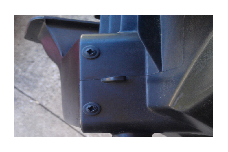 3. Now that the two pieces are connected, drill 2 more 1/8” holes on the side of the air box where the 2 meet and connect them using 2 black Phillips screws.