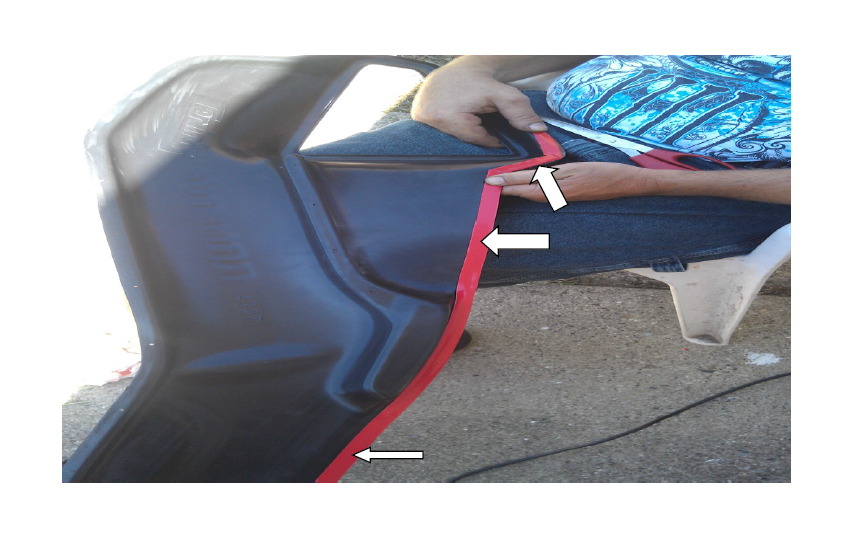 6. Apply sealer to lip of diversion plate where the 3M was placed to help the plate adhere to the hood.