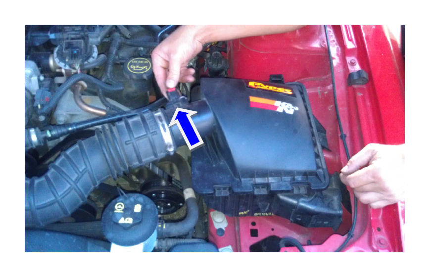 Note: In the picture below, the blue arrow shows the direction to remove the MAF Sensor Wiring Pigtail.