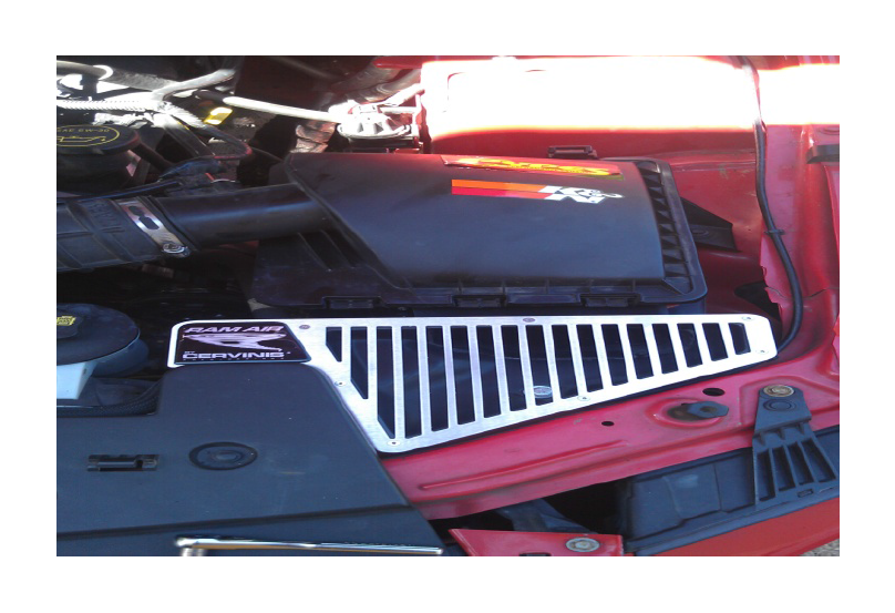 2. Check Fitment on Diversion Plate. Check to see the scoops line up with the manufactured indents in the diversion plate. Check to see that this kit will clear your radiator fluid reservoir and tube and also clearance on the top right corner of the hood where the Hood stopper rests.