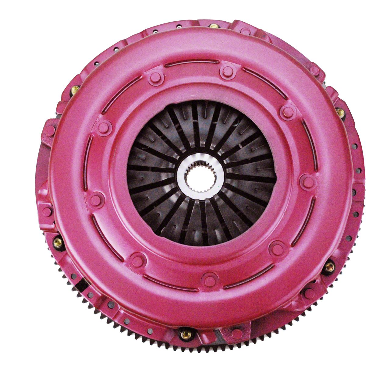 Smooth Street Driveability. Maximize your Challenger’s ground performance by installing this RAM Force 10.50 26-Spline Dual Disc Metallic Clutch with Steel Flywheel. This system provides improved driveability for high horsepower applications and better low-speed dynamics because of its higher inertia. It features 3-strap system to eliminate the floater plate rattle and to deliver a more street-friendly performance with crisp engagement, easier pedal effort with a smooth pedal feel.