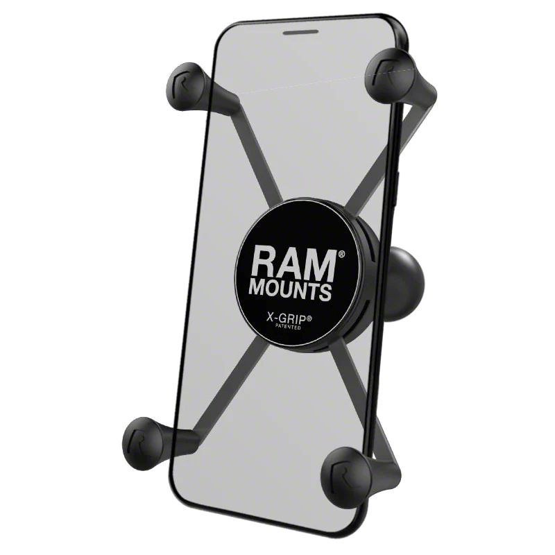 Description. The X-Grip IV has a clean and clever four leg design that sports great holding power without hiding your phone or phablet behind foam pads and plastic. The perfect complement to the modern sleek interior of today's vehicles, the X-Grip IV is the phablet cradle evolved. Compatible and interchangeable with a wide range of popular RAM Mounting products, this elegant cradle is ready to compliment your phablet and become the most useful accessory in your vehicle. The X-Grip includes a device tether recommended for outdoor applications. The cradle is compatible with handheld devices that will fit the dimensions listed below. It is important to verify the dimensions of your handheld device with a case/sleeve/skin when determining the overall size.