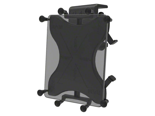 Description. The RAM-B-177-UN9U consists of a glare shield clamp base, double socket arm, round base adapter and universal X-Grip III cradle. The mount is designed with a RAM 1" diameter patented rubber ball and socket system that has adjustment points at both ends of the double socket arm; this allowing for almost infinite adjustment and perfect viewing angles. The X-Grip III clamping cradle consists of a composite spring loaded cradle, expandable grip arms and additional bottom support keeper. Included are extra easy access grip knobs, located on the back of the cradle for quick release of your tablet. The X-Grip III clamping cradle expands and contracts for perfect fit of most 10" tablets with or without sleeves, as well as some smaller tablets. Please verify dimensions of your tablet below for compatibility with the X-Grip III.