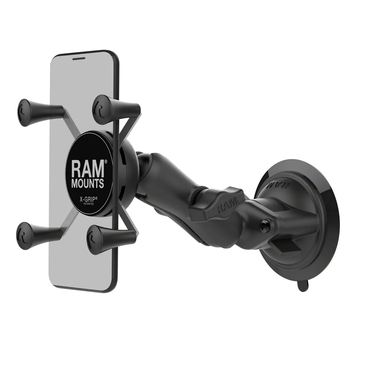 Application. The RAM Mounts X-Grip Phone Mount with Twist-Lock Suction Cup offers a universal fitment.