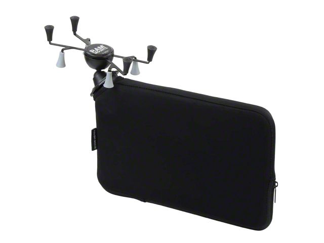 Description. The RAP-SB-407-UN8U consists of the Tough-Wedge™, snap-link mount and universal X-Grip Tablet cradle. The Tough-Wedge™ is a seat wedge mount that fits in the gap between the vehicle seat and center console; allowing easy access and operation of your mobile device. The Tough-Wedge™ can also be used for back-seat applications, inserted into the pockets located on the back of the front seats. The included X-Grip cradle has a clean and clever four leg design that sports great holding power without hiding your tablet phone behind foam pads and plastic. The spring loaded X-Grip cradle expands and contracts, allowing for a perfect custom fit of your tablet. The perfect complement to the modern sleek interior of today's vehicles, the RAM X-Grip is the tablet cradle evolved. The X-Grip includes a device tether recommended for outdoor applications. The cradle is compatible with handheld devices that will fit the dimensions listed below. It is important to verify the dimensions of your handheld device with a case/sleeve/skin when determining the overall size.