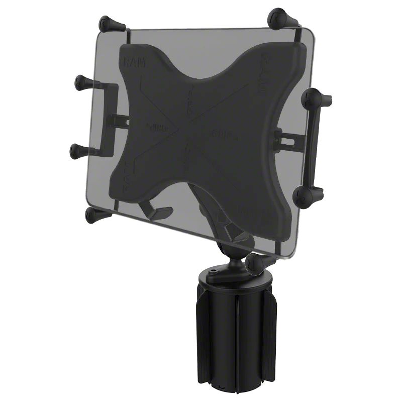 Description. The RAP-299-3-UN11U consists of the RAM-A-CAN™ cup holder base, double socket arm and universal X-Grip cradle. Included are support fins that flex and can be trimmed, making the cup holder base conform to most vehicle cup holders. The mount is designed with a RAM 1" diameter patented rubber ball and socket system that has adjustment points at both ends of the double socket arm, allowing for almost infinite adjustment and perfect viewing angles. The X-Grip cradle is compatible with handheld devices that will fit the dimensions listed below. It is important to verify the dimensions of your handheld device with a case/sleeve/skin when determining the overall size.