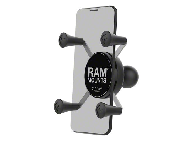 Secure And Versatile Phone Mount. The RAM Mounts X-Grip Universal Phone Holder with Ball is designed to securely hold your phone while keeping it fully functional and accessible. Its unique 'X' design expands and contracts to fit phones ranging from 1.87 to 3.25 inches in width, even with a case. This mount is ideal for use in vehicles, motorcycles, boats, or any application requiring a firm and adjustable phone holder.