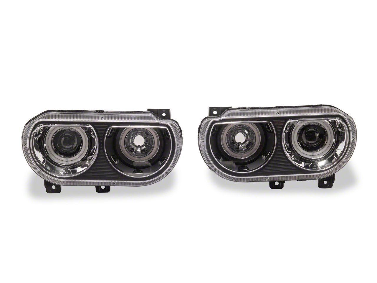 Modern Styling. A pair of Raxiom Dual LED Halo Projector Headlights is an excellent way to add an modern appearance to your 2008-2014 Dodge Challenger. With an impressive design, these Headlights blend nicely with your Challenger's front end. These Projector Headlights feature dual LED halo accent lights to give your Challenger an updated look.