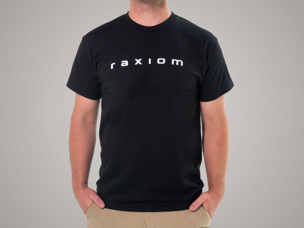 Raxiom. Let everyone know whose parts you're running on your Mustang with a Raxiom Text Logo T-Shirt. This bold black short-sleeved t-shirt features the Raxiom text logo across the front in bright white lettering.