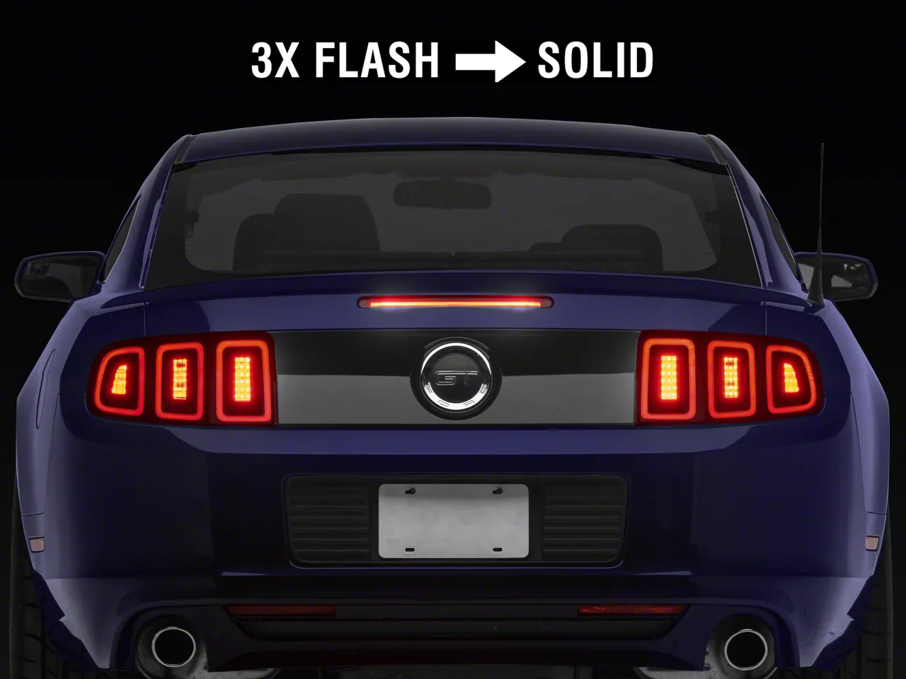 High Visibility. Increase the visibility of your 2010-2014 Mustang with a Raxiom Formula Smoked LED Third Brake for additional safety. Featuring a built in flasher module, this Formula Third Brake Light will quickly flash three times and then stay solid for as long as the brake pedal is depressed, just like your factory third brake light. The quick pulsating action will ensure that you catch the attention of distracted or careless drivers when you hit the brakes.