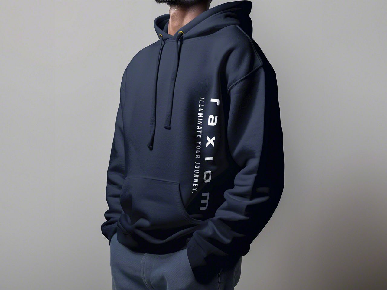 Classy Hoodie. This Raxiom X Hoodie is a classy way to show your appreciation for the brand. With "ILLUMINATE YOUR JOURNEY." and "raxiom" down the side of the front, you get a fashion statement that wears well.