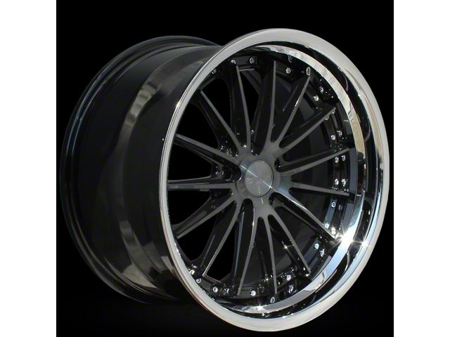 The 20x10.5 Rennen CSL-8 Tinted Black with Chrome Step Lip Wheel; Rear Only; 20x10.5; 18mm Offset is completed in a tinted black finish with a chrome step lip that will make everyone green with envy. This wheel features a durable clear coat that is tough enough to stand up against the hazards of everyday driving.