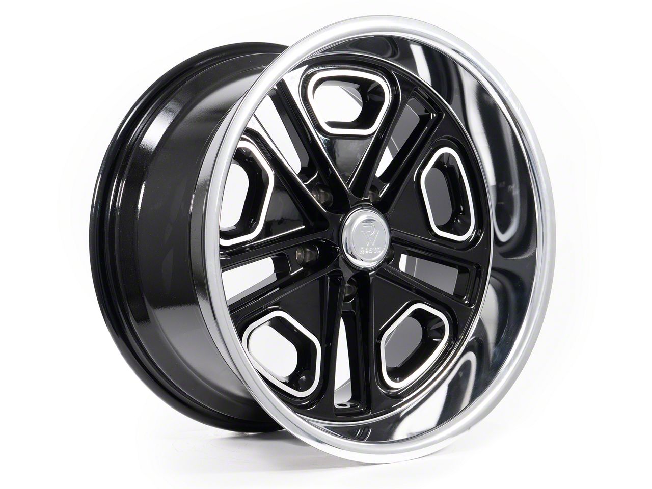 Resto Vintage Wheel Co Del Ray Glossy Black Center with Milled Window Diamond Cut Lip Wheel; 18x9.5; 1mm Offset (24-26 Mustang)Find parts that fit my vehicle