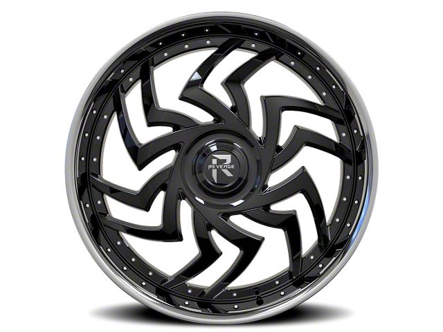 Revenge Luxury Wheels RL-107 Gloss Black with Chrome Lip Wheel; 24x9; 15mm OffsetThis wheel features a sleek and durable design, ideal for enhancing the aesthetic and style of your vehicle. Its quality craftsmanship ensures a perfect combination of form and function, suitable for any driver seeking a balance of style and dependability. Its high-quality finish ensures resistance against corrosion and wear over time. Designed for optimal visual appeal, this wheel complements a variety of vehicle styles.