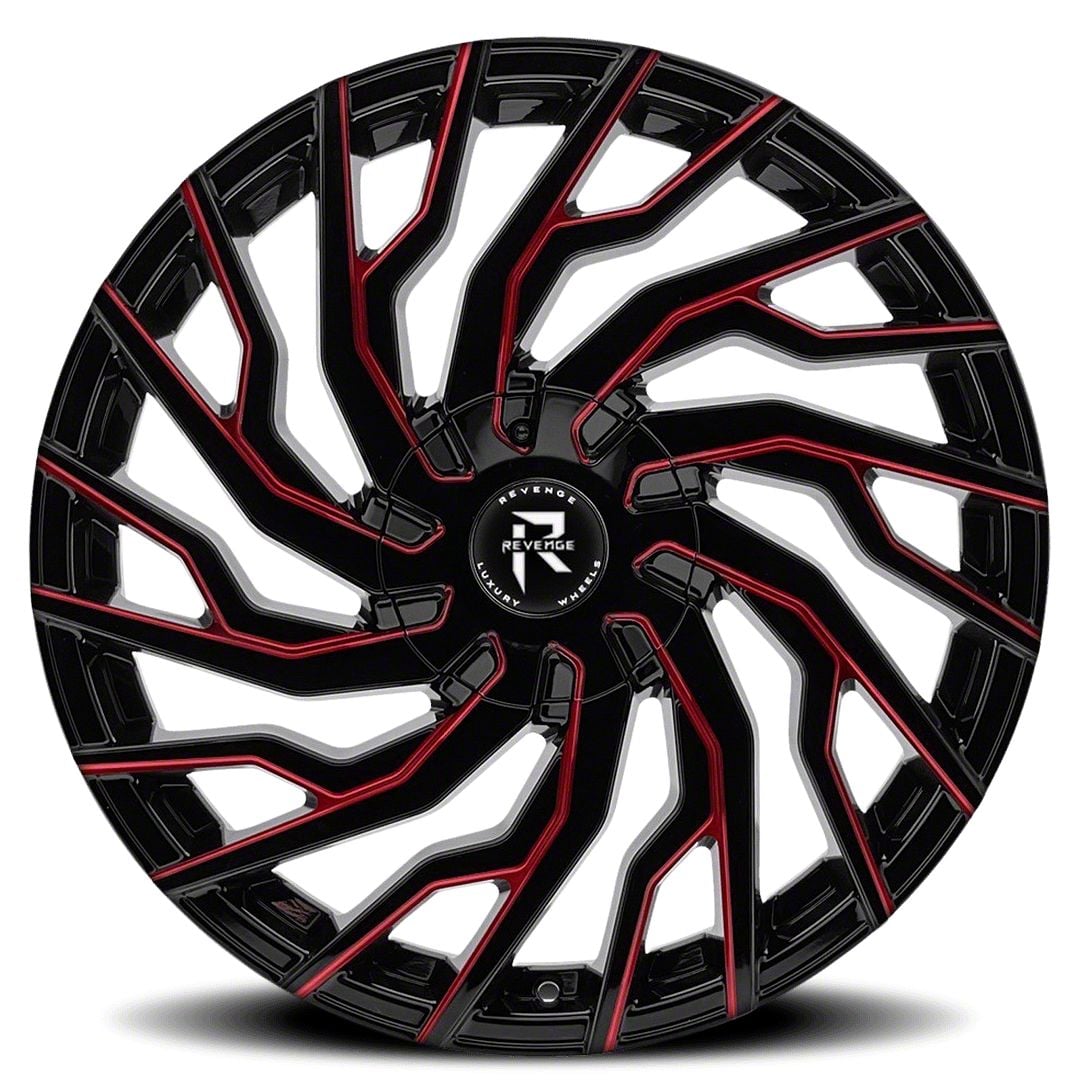 Revenge Luxury Wheels RL-101 Black Paint Red Milled Wheel; 24x9; 15mm Offset is a visually striking choice, offering a combination of rugged durability and modern styling. Its design complements off-road and sporty vehicles alike, enhancing the overall aesthetic appeal.