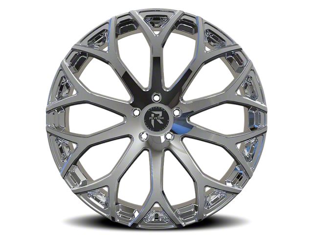 Revenge Luxury Wheels RL-105 Chrome Wheel; 20x9; 20mm Offset is a visually striking choice, offering a combination of rugged durability and modern styling. Its design complements off-road and sporty vehicles alike, enhancing the overall aesthetic appeal.