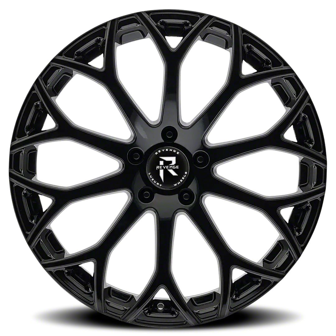 This 20x9 Revenge Luxury Wheels RL-105 Gloss Black Wheel; 20x9; 20mm Offset is completed in a high-quality gloss black finish that will make everyone take notice. For added looks and strength, the wheel features a durable clear coat that withstands the rigors of daily driving.