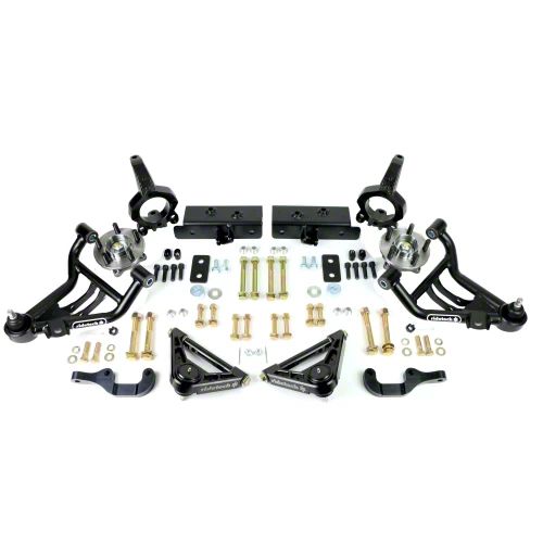 Robust Construction. Constructed with black tubular steel control arms and fortified with Delrin bushings infused with PTFE, this system not only improves tire clearance and steering angle but also ensures long-lasting durability. With included wheel studs and spindles, along with straightforward installation instructions and all necessary hardware, upgrading your vehicle's suspension has never been easier.