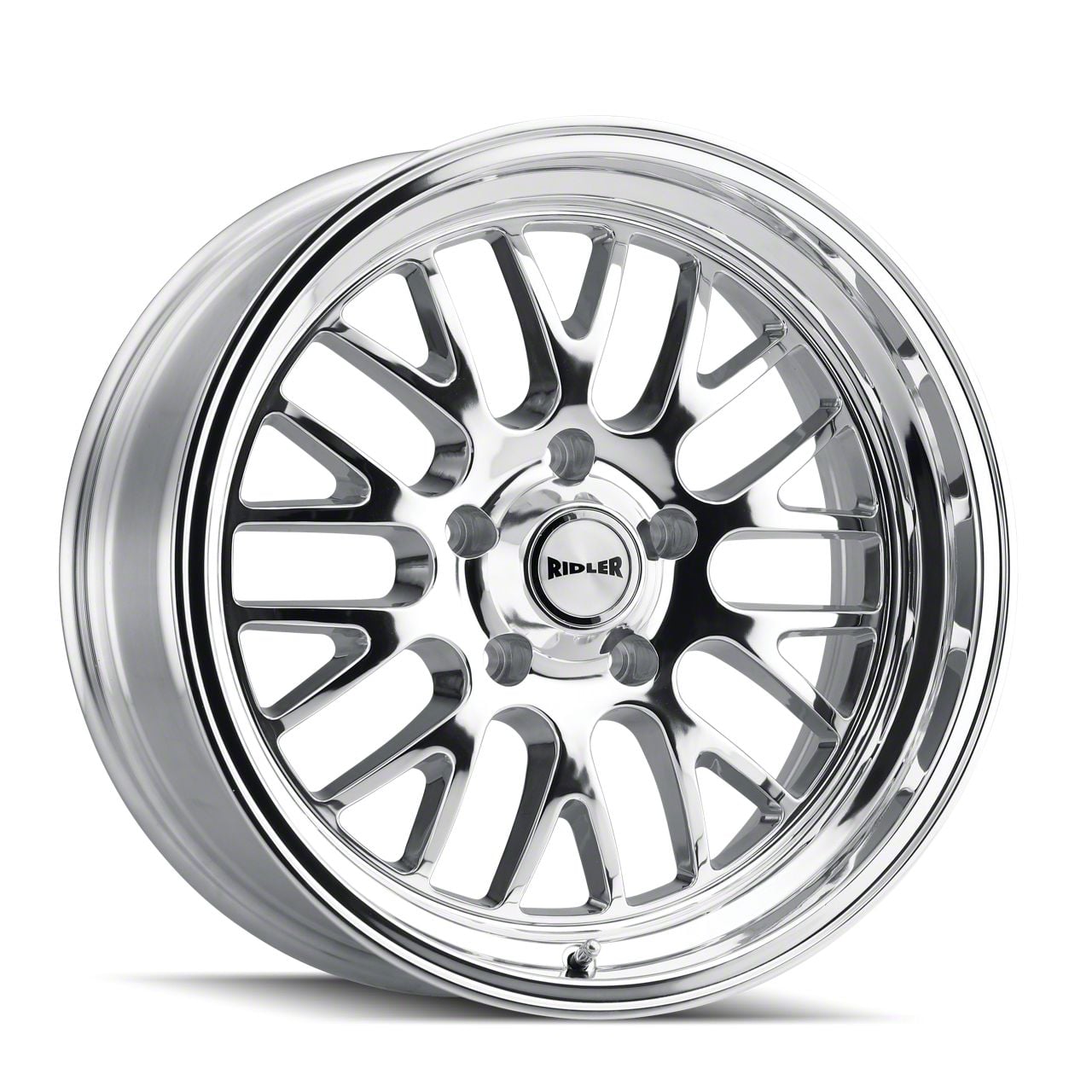 ApplicationThis Ridler 607 Polished Wheel; 18x9.5; 6mm Offset, with a backspace of 5.486 Inch, 139.3mm; and bolt pattern of 5 x 114.3mm (5 x 4.5-Inch), is designed to fit 1999-2004 Mustang models. Sold individually.