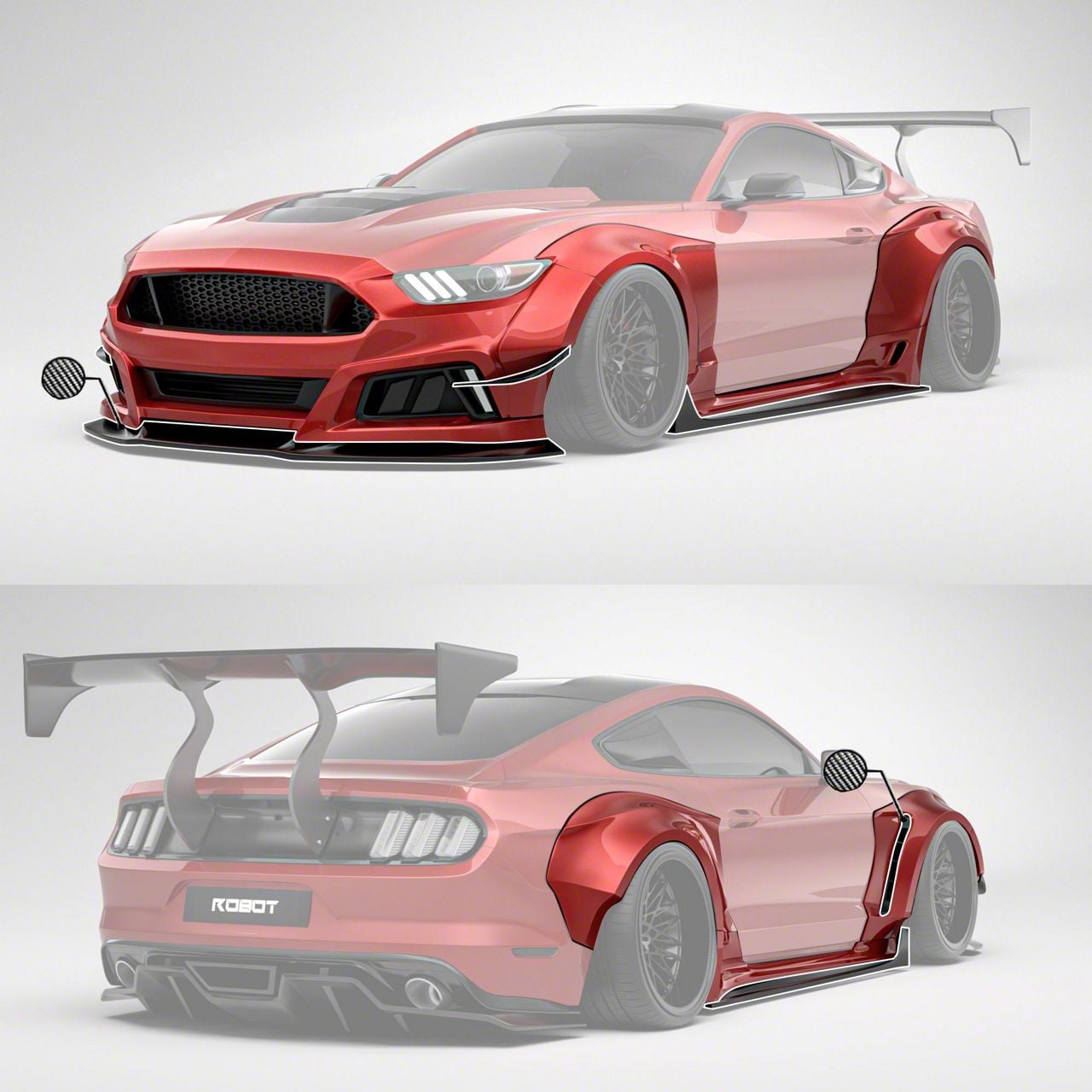 Robot Bodykits V2 Widebody Kit; Unpainted/Partial Carbon (18-23 Mustang Fastback, Excluding GT350 & GT500)Find parts that fit my vehicle