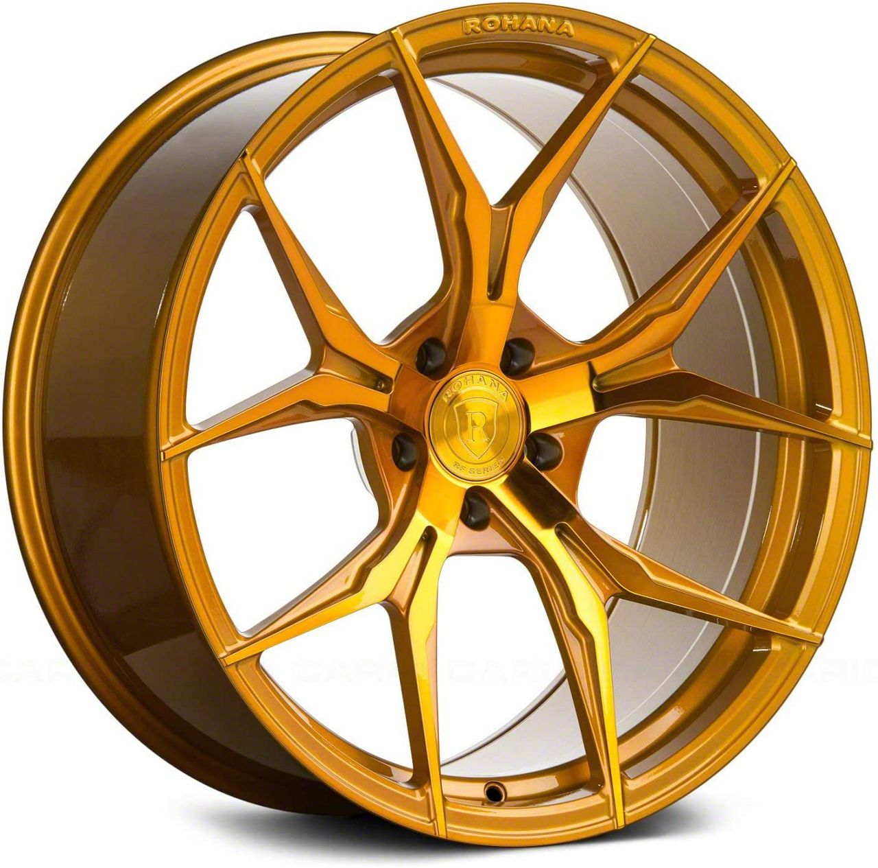 The 20x10 Rohana Wheels RFX5 Gloss Gold Wheel underwent a thorough finishing process with certain coatings providing added protection against environmental elements and daily wear. Aesthetically, this finish can significantly enhance the wheel's appearance, making it a standout feature of a vehicle.