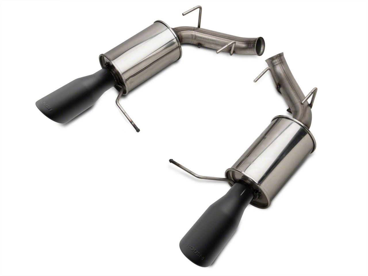 Great Design and Tones. Say goodbye to the factory exhausts of your Ford Mustang when you install this Roush Axle-Back Exhaust with Black Tips, which was exclusively designed for AmericanMuscle. This axle-back exhaust features an enhanced aggressive sound and volume on the outside and quiet rumble in the cabin. You don’t have to worry about in-cockpit booms that are common in other high-performance exhausts. The open-chambered muffler and round tips offer a less inhibited sound.