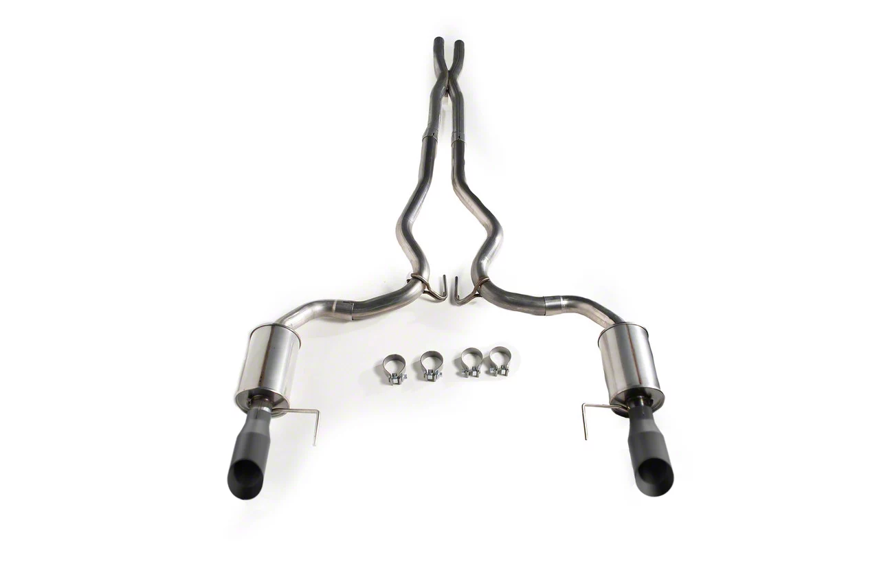 Aggressive, Race-Inspired Tones. If you want exhaust tones that resemble the rumbles and roars of those cars competing on the tracks, this Roush Cat-Back Exhaust with Black Tips is for you. The assembly is designed for aggressive, race-inspired exhaust tones and sound in your Mustang. Get a healthy rumble at idle and a powerful roar when you step on the gas, all while enjoying a drone-free cabin experience.