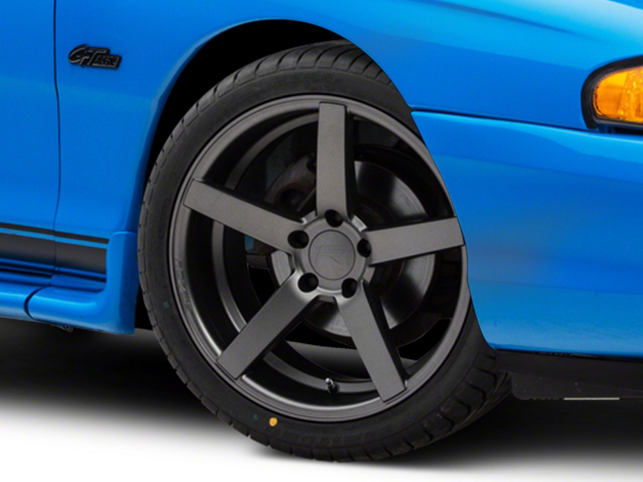 Satin Gunmetal Finish. Completed in a high quality "Gunmetal" finish (sometimes called anthracite) for an impressive head-turning presentation, this Mustang wheel features a durable satin clear-coat finish that is tough enough to stand up against the hazards of everyday driving - including road chips and pitting.