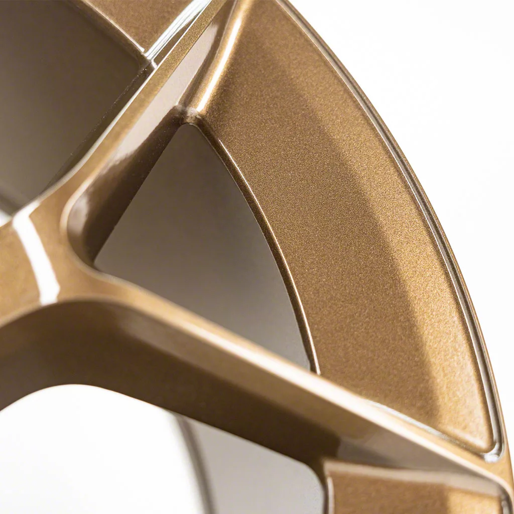 The 20x9.5 RTR Aero 5 Bronze Wheel; 20x9.5; 33mm Offset is completed in a high-quality, sparkling bronze finish, which will be sure to turn heads. For added durability and appearance, there is a durable clear coat that withstands the rigors of the road.