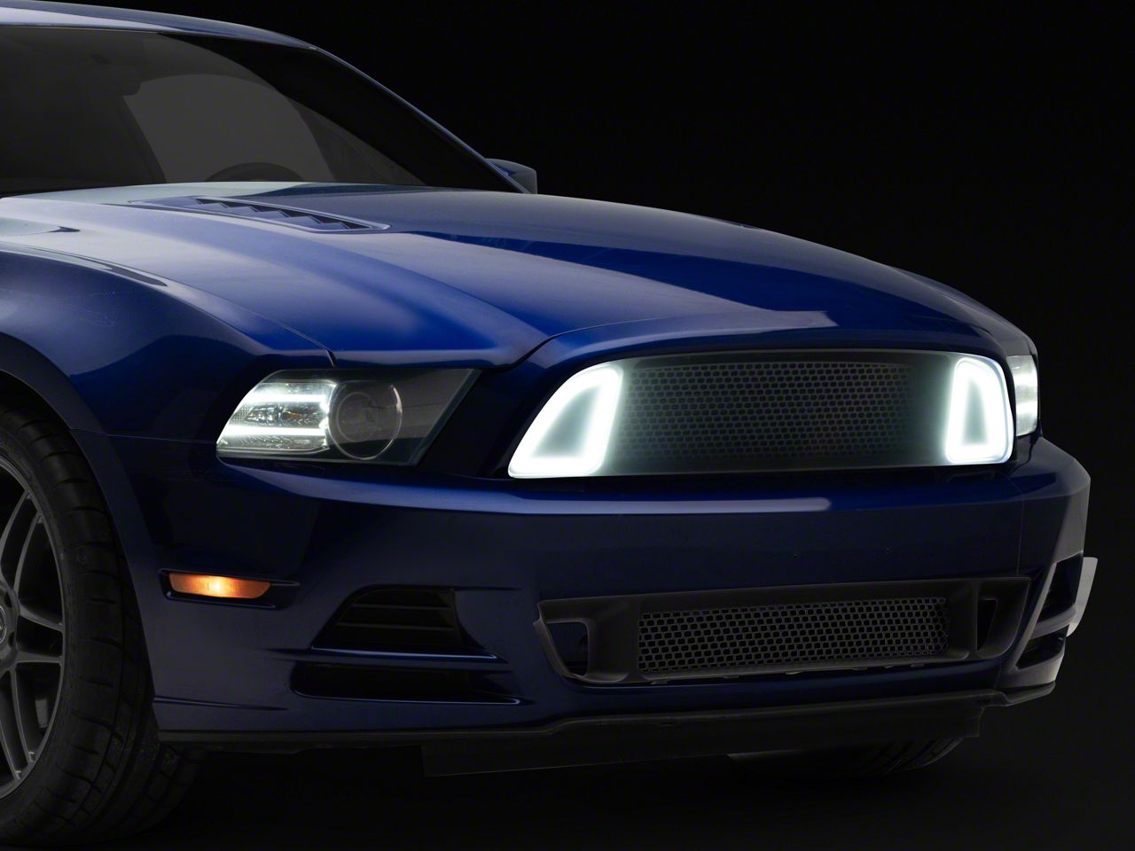 LED Accent Lighting. The RTR Upper Grille is available with the very popular integrated LED Accent Lighting around the vent openings for an impressive head turning appearance. The LED Accent Lights simply plug directly into your Mustang's existing factory headlight harness with no cutting or splicing required. The LEDs are automatically activated in conjunction with your Day Time Running Lights, so they are always on when your Mustang is running. The LED Accent Lights are only compatible with the RTR Upper Grille, they are