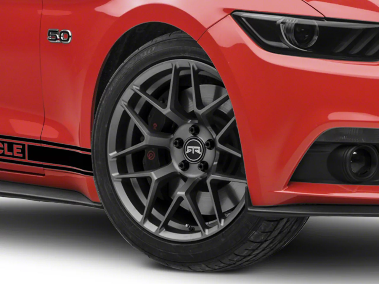 The 19x9.5 RTR Tech 7 Satin Charcoal Wheel is completed in a dark charcoal hue that is lighter than the standard "Henry Ford" black.