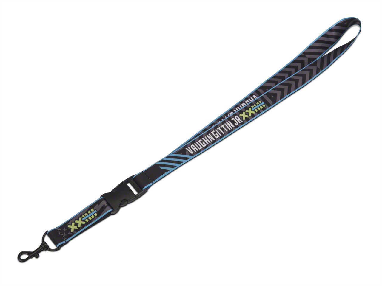Superior Quality. This break away black and gray nylon safety lanyard features Vaughn Gittin Jr.'s name printed in white. The metal bolt snap hook will securely hold keys or pit passes, while the detachable buckle will make your keys easy to manage.