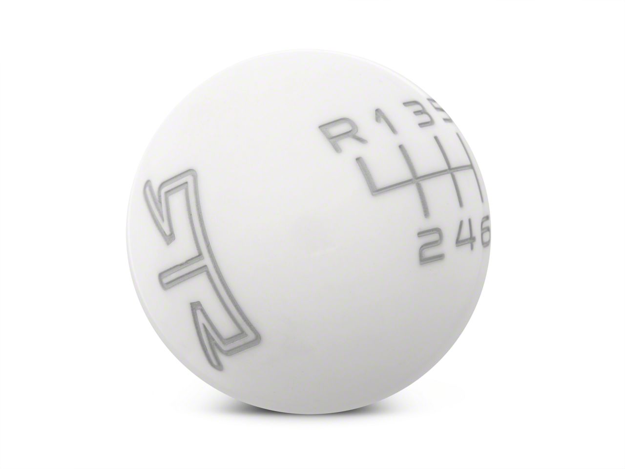 Quality Construction. Made from a high quality solid white resin compound, this 2-inch diameter RTR Shift Knob features a gray 6-speed shift pattern engraved on the top and a gray RTR Logo on either side. The engravings have been inlaid, providing you years of use without fear of fading.