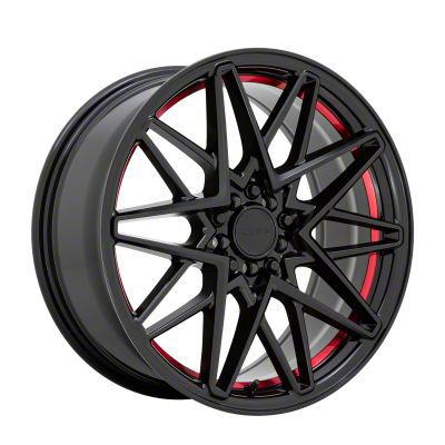 RUFF Clutch Gloss Black with Machined Red Inner Lip Wheel; 18x8. The RUFF Clutch Gloss Black with Machined Red Inner Lip Wheel offers a striking balance of style and refinement. Its unique design accentuates the vehicle's aesthetic, while the premium construction underscores its robust nature. This wheel is a perfect choice for those seeking both elegance and a strong visual statement.