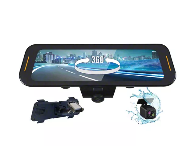 Advanced 360-Degree Dash Camera Mirror. The Rydeen 360 Surround View Frameless Rearview Mirror with 4K Dash Camera combines premium mirror design with cutting-edge safety technology. Offering 360-degree monitoring and 4K video recording, it delivers comprehensive coverage of your surroundings while doubling as a sleek, ten-inch frameless touchscreen mirror. The Rydeen 360 Surround View Frameless Rearview Mirror with 4K Dash Camera is an ideal upgrade for drivers seeking enhanced visibility, safety, and recording capability.