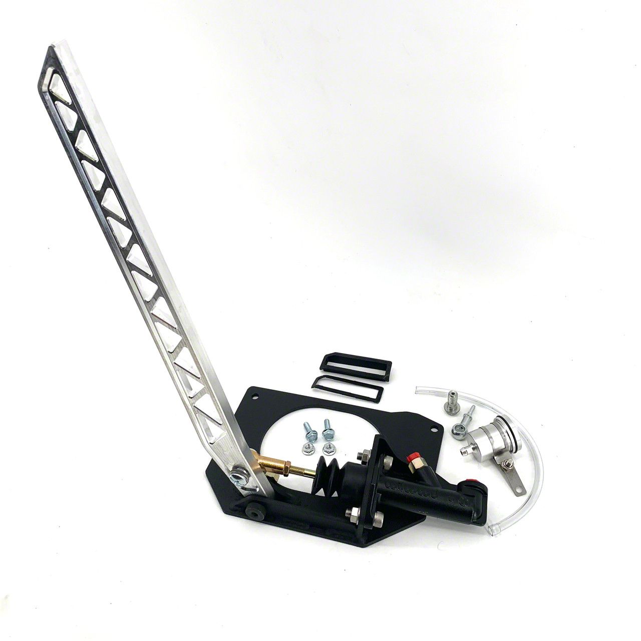 Effortless Integration. The hardened steel clevis pin and adjustable master cylinder pushrod are engineered for precise operation and compatibility with most aftermarket hydraulic handbrake lines, ensuring a seamless integration. This kit is designed to utilize factory mounting locations, making installation straightforward without the need for extensive modifications.