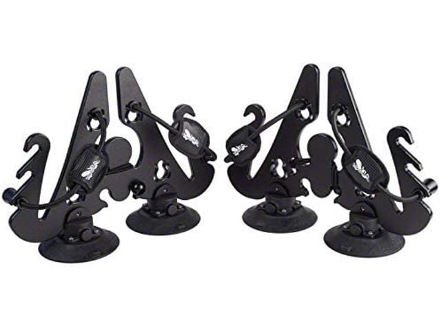Description. Be the first to experience a brand-new design for a brand-new concept - the travel ski rack. Light and compact enough to travel with to your ski destination, or to stow in your trunk or garage without being an inconvenience. Like all SeaSucker products, it attaches securely when needed and removes cleanly when not, thanks to two powerful 6" SeaSuckers on each carrier. Carrier body is made of super durable HDPE; slots for skis and snowboards are padded to protects you equipment. Holds up to two sets of skis plus poles, or two snowboards. Contents include two carriers (one for front, one for back) plus snap-in-place retention cords for skis and snowboards, and retention cords for poles.