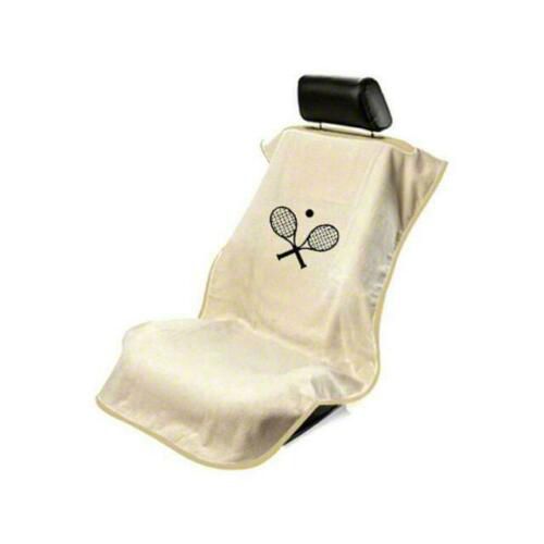 Comfort and Style. The Seat Towel with Crossed Tennis Racquets Logo Design offers a stylish and practical accessory for your vehicle. Featuring a cream tan finish and a soft poly-cotton material, this towel adds comfort and a sporty touch to your car’s interior.