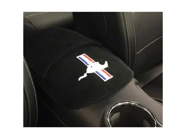 Application. This Center Console Cover with Tri-Bar Running Pony Logo fits all 2015-2023 Ford Mustang models.