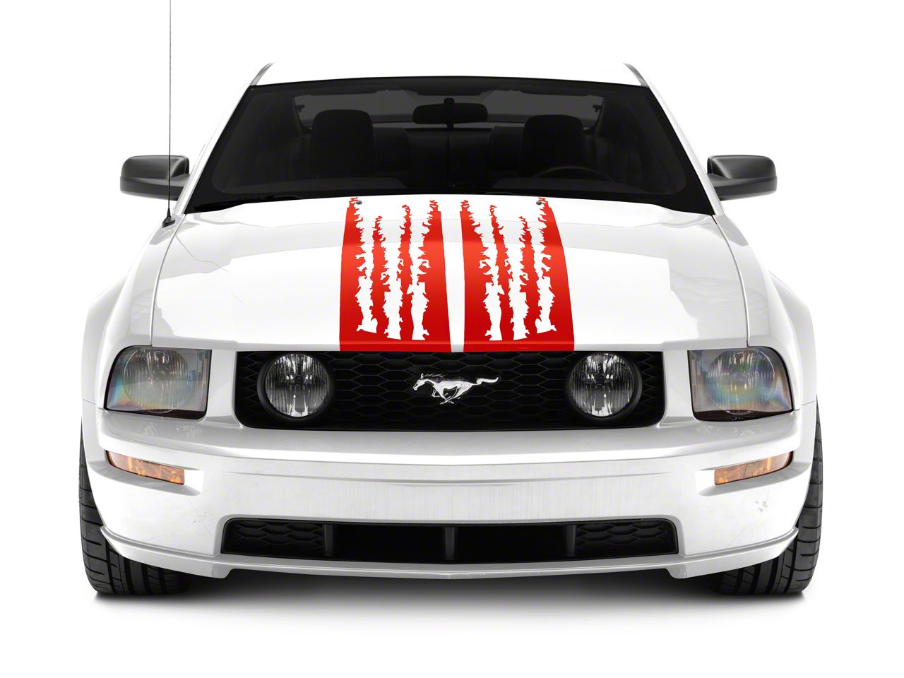 Application. These SEC10 Shredded Full Length Stripes; Red are designed to fit 2005-2009 Ford Mustang models.