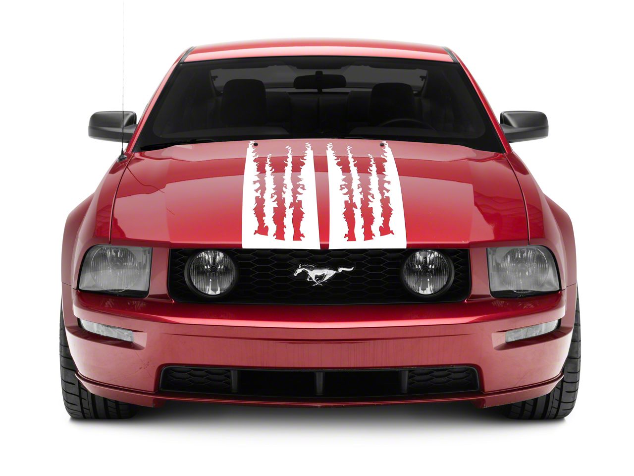 Application. These SEC10 Shredded Full Length Stripes; White are designed to fit 2005-2009 Ford Mustang models.